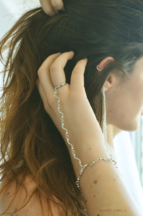 • Made with sweet silver swirly chain connected to an adjustable ring
