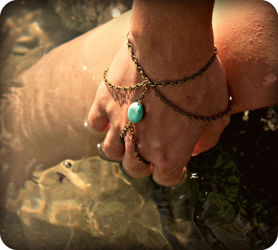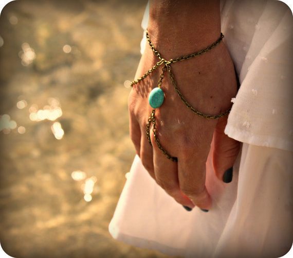 • Made with beautiful bronze chain draping side to size and adorned with a single turquoise howlite bead.