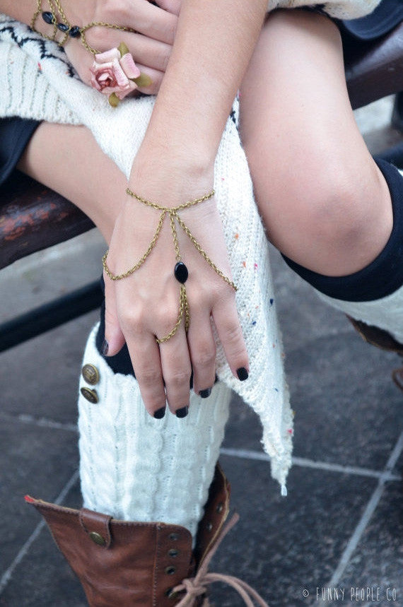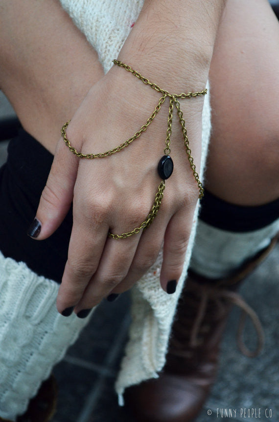 • Made with beautiful bronze chain draping side to size and adorned with a single onyx bead.