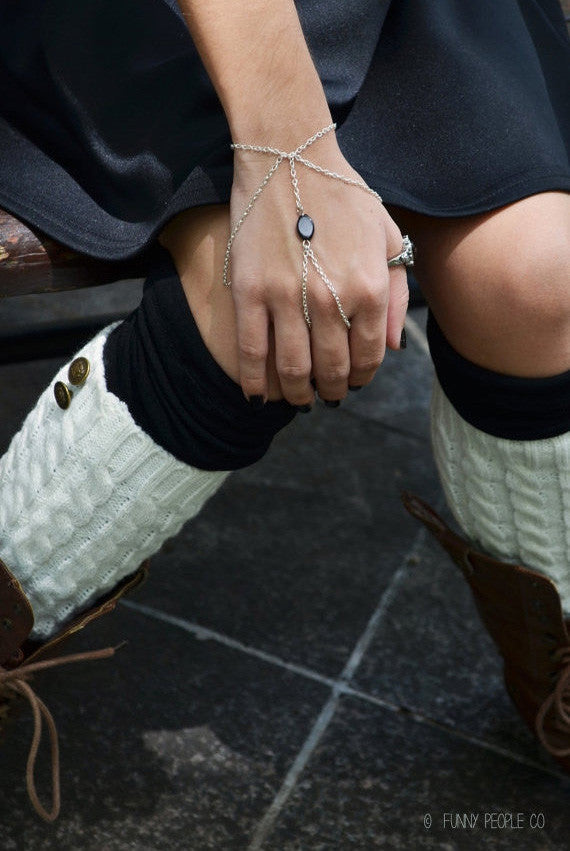 • Made with sweet silver plated chain; two strands cascade on each side and a single black onyx bead adorns your hand.